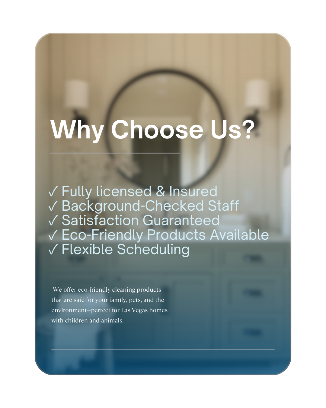 Yes, absolutely! Aloha Cleaning Pros is fully licensed and insured in Las Vegas. You can have complete peace of mind knowing that we meet all the necessary requirements and are committed to providing professional and protected cleaning services for your home. We're dedicated to ensuring your comfort and satisfaction.
